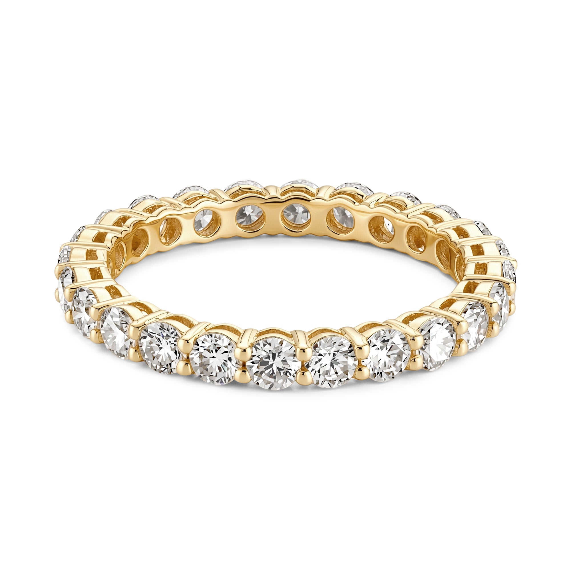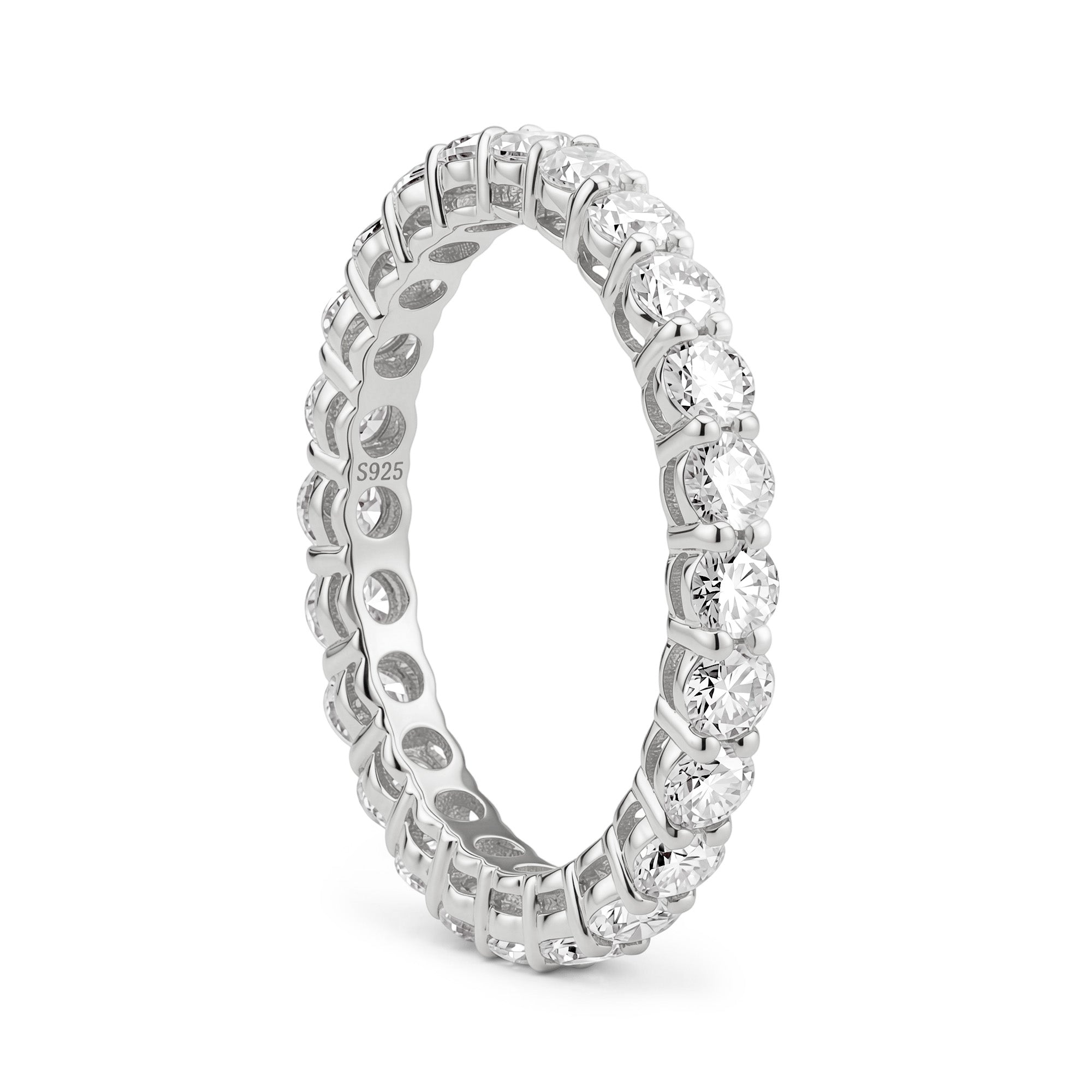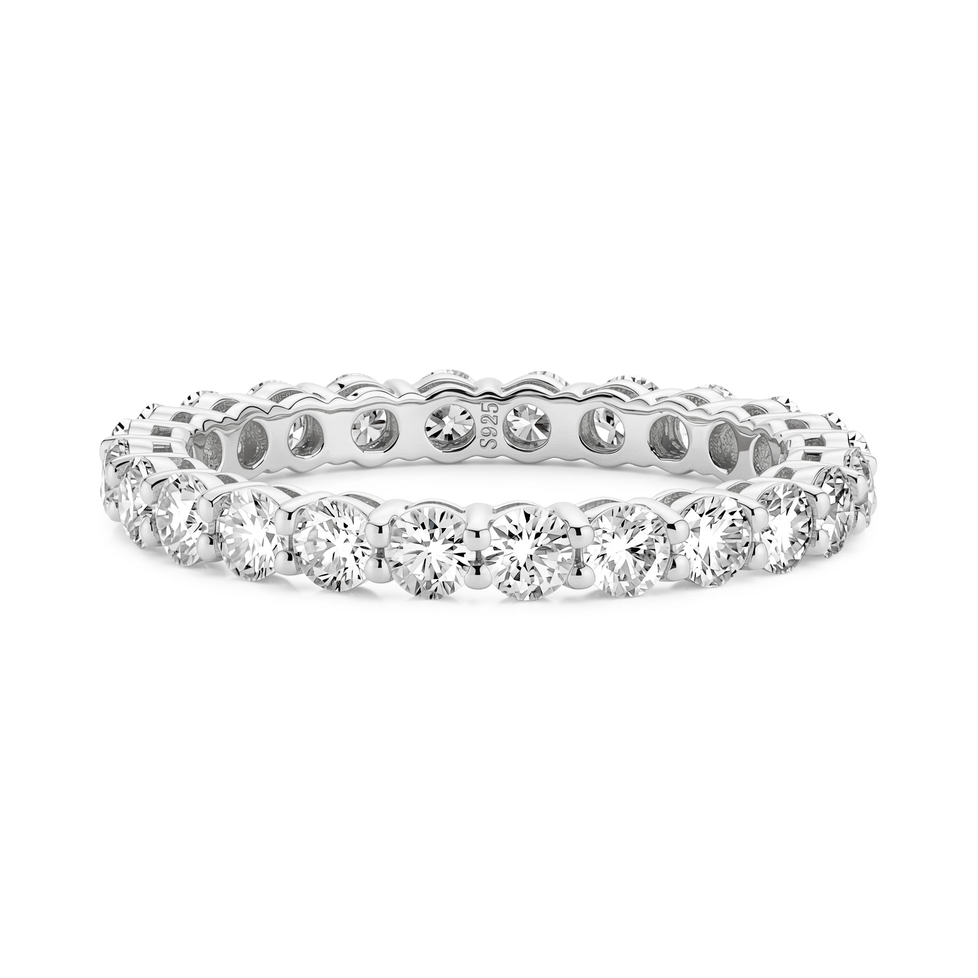 Introducing our All-Around Round Moissanite Eternity Band — a radiant symbol of forever. Featuring brilliant round-cut moissanite set all around the band, this ring delivers nonstop sparkle and timeless elegance, making it the perfect choice for weddings, anniversaries, or a stunning everyday statement.