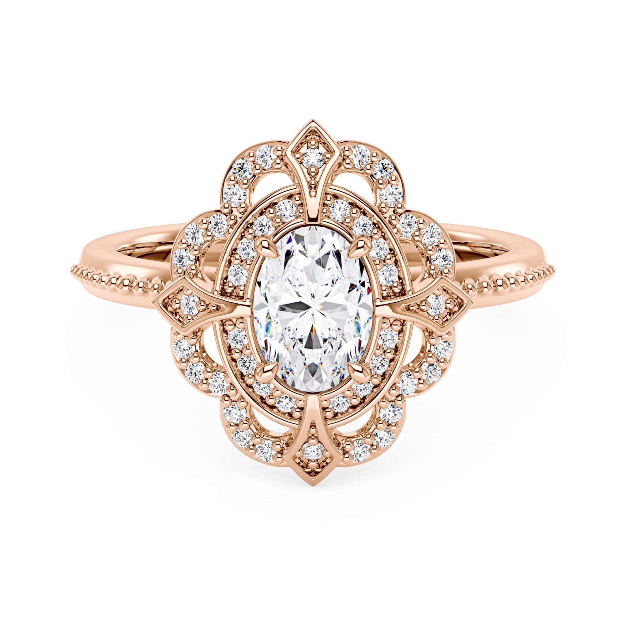 1 Carat Art Deco Oval Pavé Halo Moissanite Ring