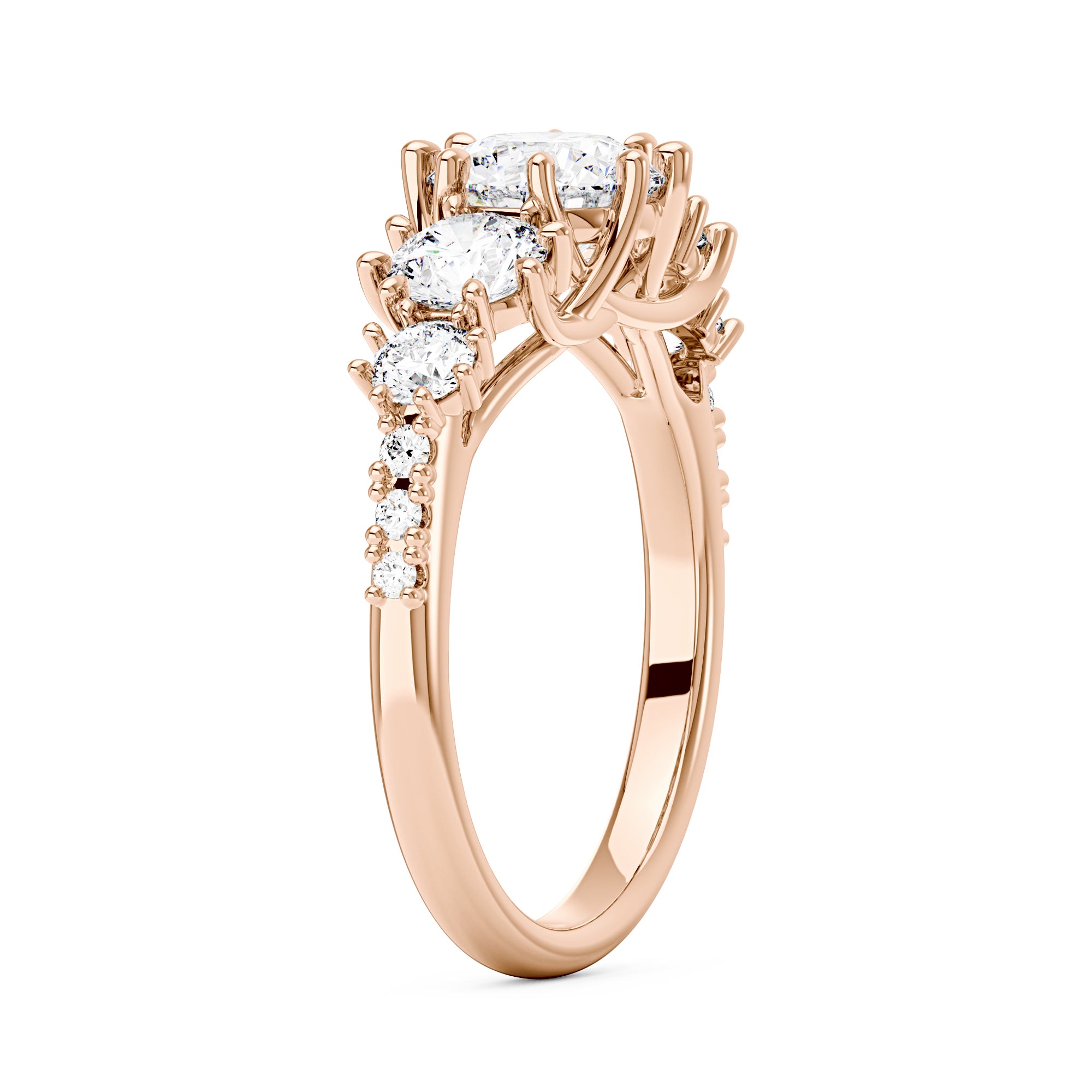 Modern Romance Cluster Round and Pavé Moissanite Trilogy Ring