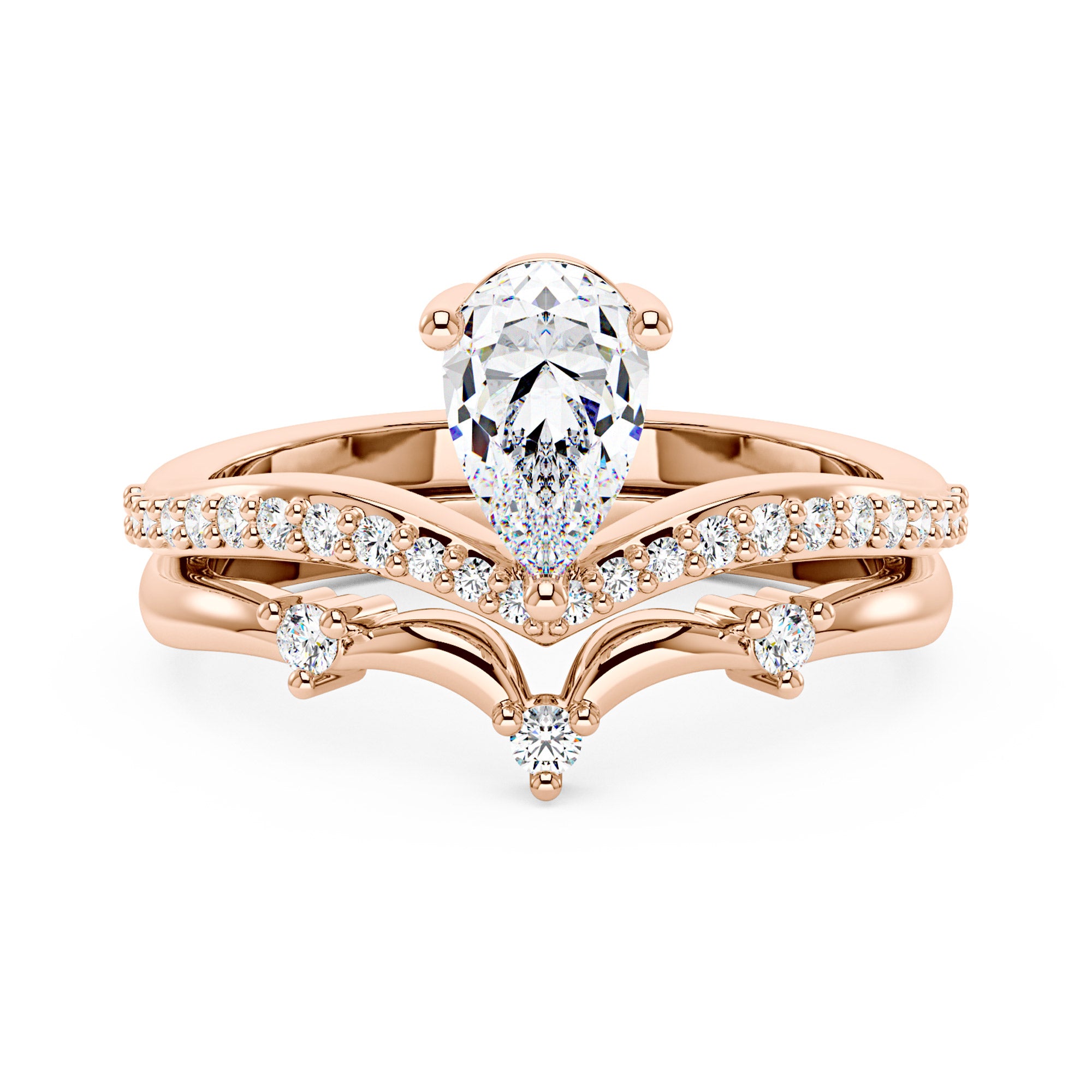 Elegant Pear Cut Moissanite Engagement Ring Set