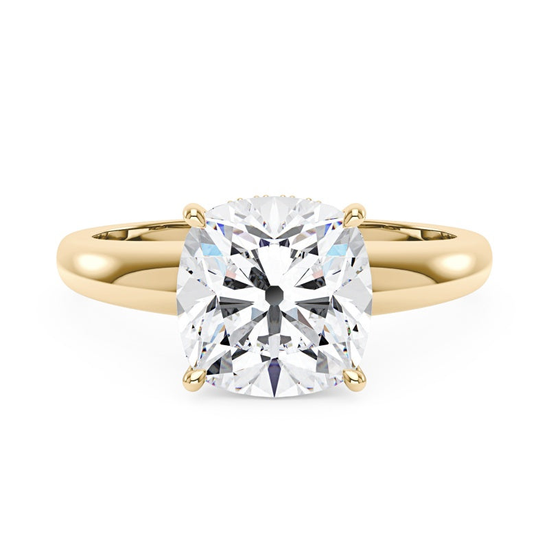 This solitaire moissanite ring is a symbol of eternal love and commitment. Crafted with precision, its elongated cushion cut showcases the stone’s natural brilliance, making it a dazzling centerpiece on any finger.
