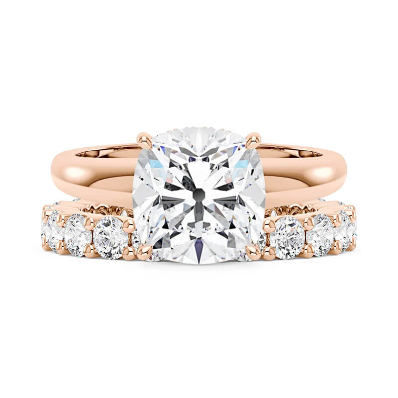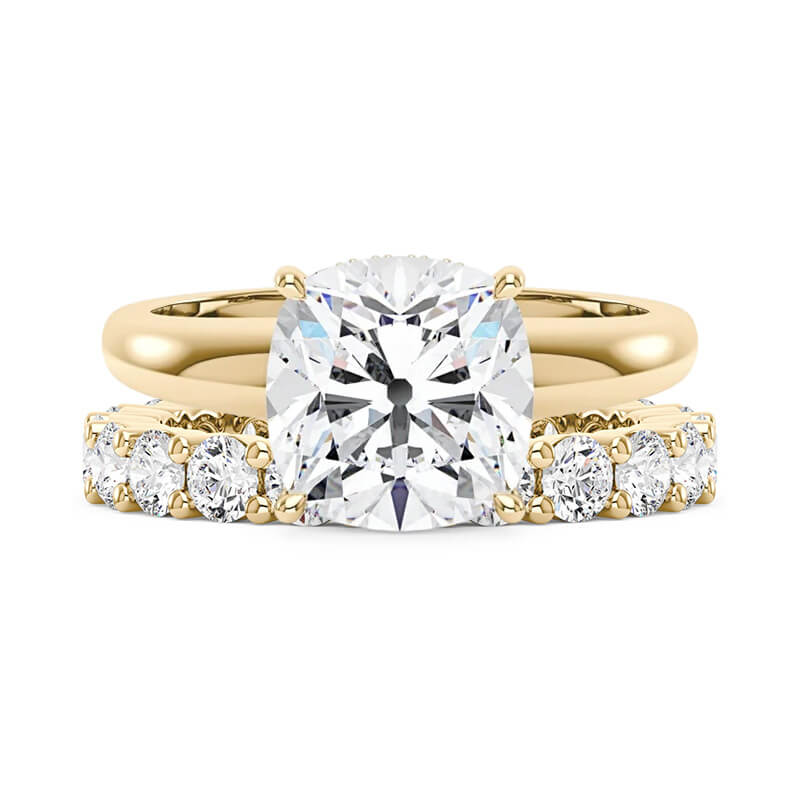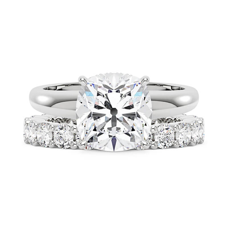 Elongated Cushion Moissanite Solitaire Ring and Full Eternity Band Bridal Set