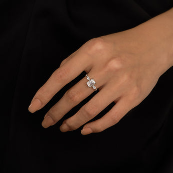 1.5 Carat Emerald Cut Moissanite Three-Stone Ring