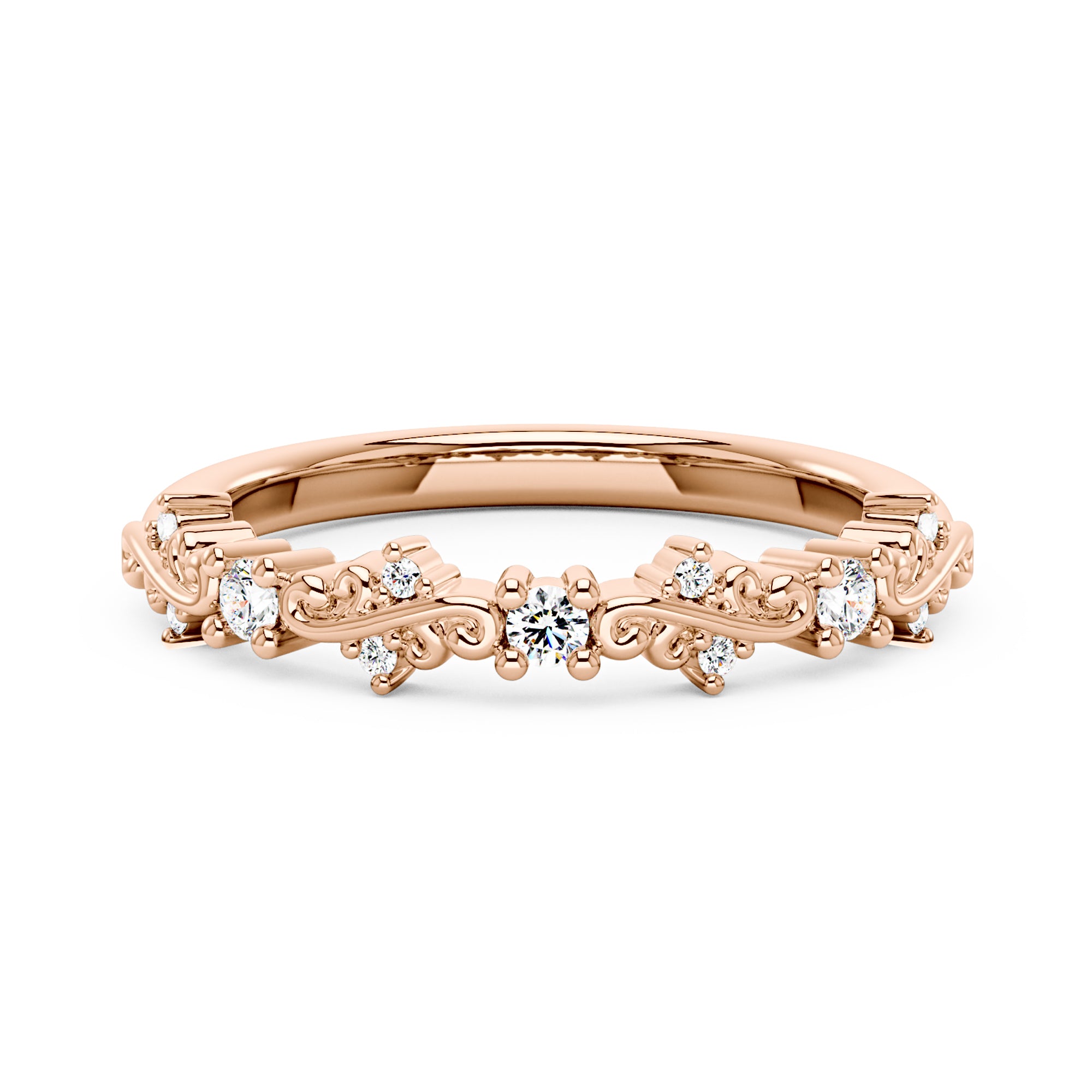This exquisite vine-entwined ring, crafted in radiant gold and adorned with a cascade of sparkling moissanites along its edge. This masterpiece boasts intricate scrolling patterns and delicate tip embellishments, embodying elegance and sophistication. Perfectly suited for the feminine woman with a graceful and refined sense of style, this ring will enhance any outfit with its timeless charm.
