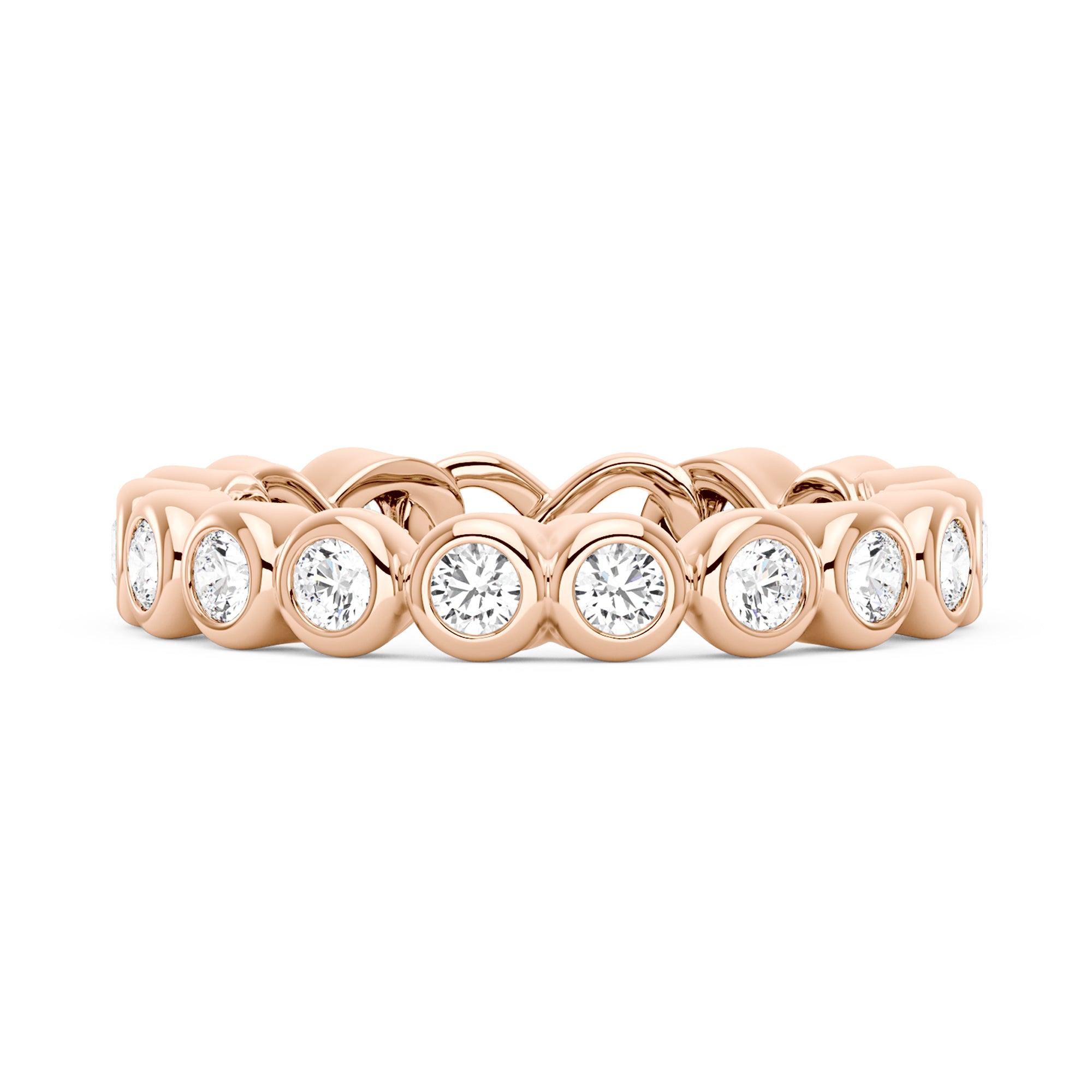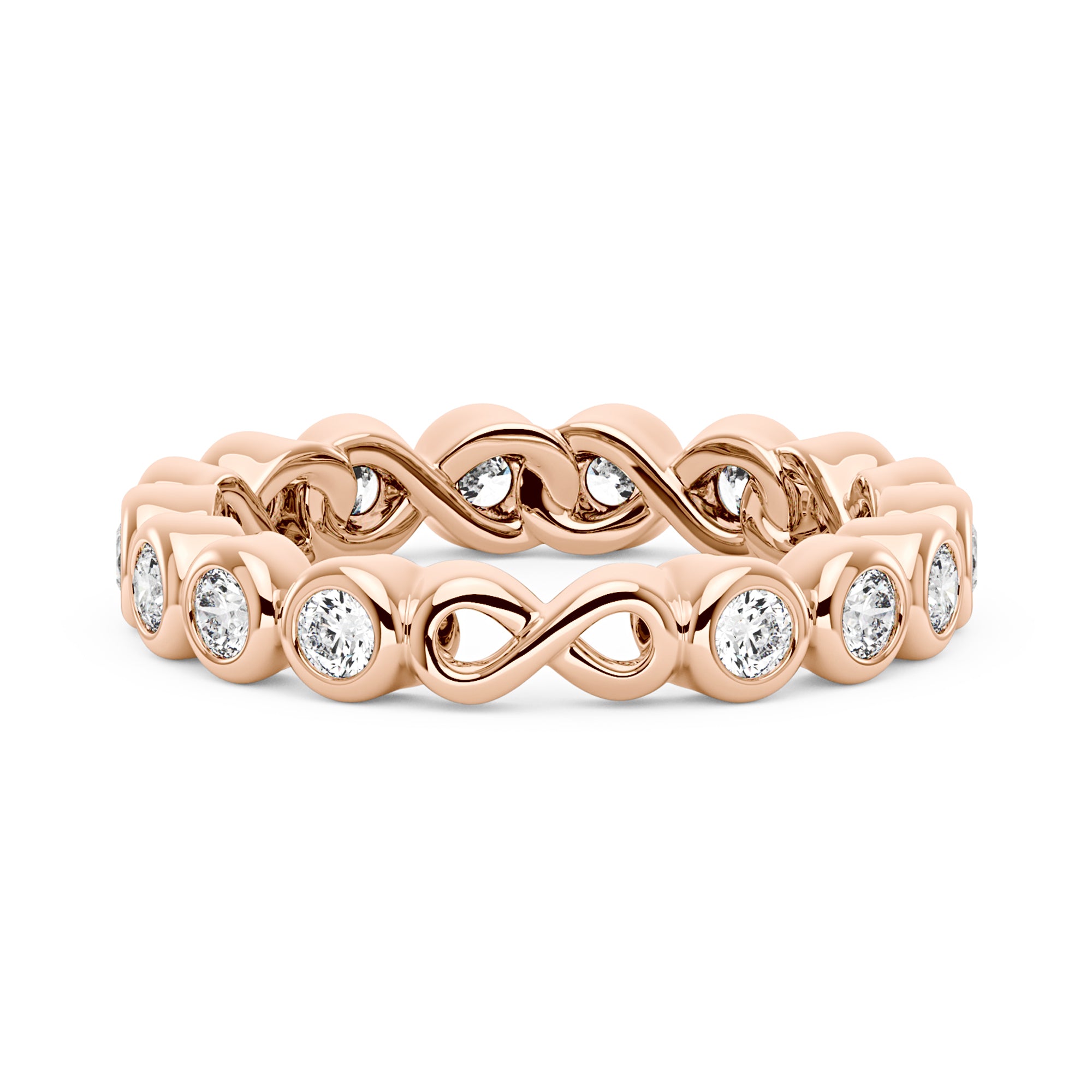 This bezel eternity ring is crafted from lustrous white band.It features a continuous loop of sparkling clear stones set closely together to create an uninterrupted circle, symbolizing eternal love and unity. The design is simple yet elegant, making it a perfect choice for expressing enduring commitment.