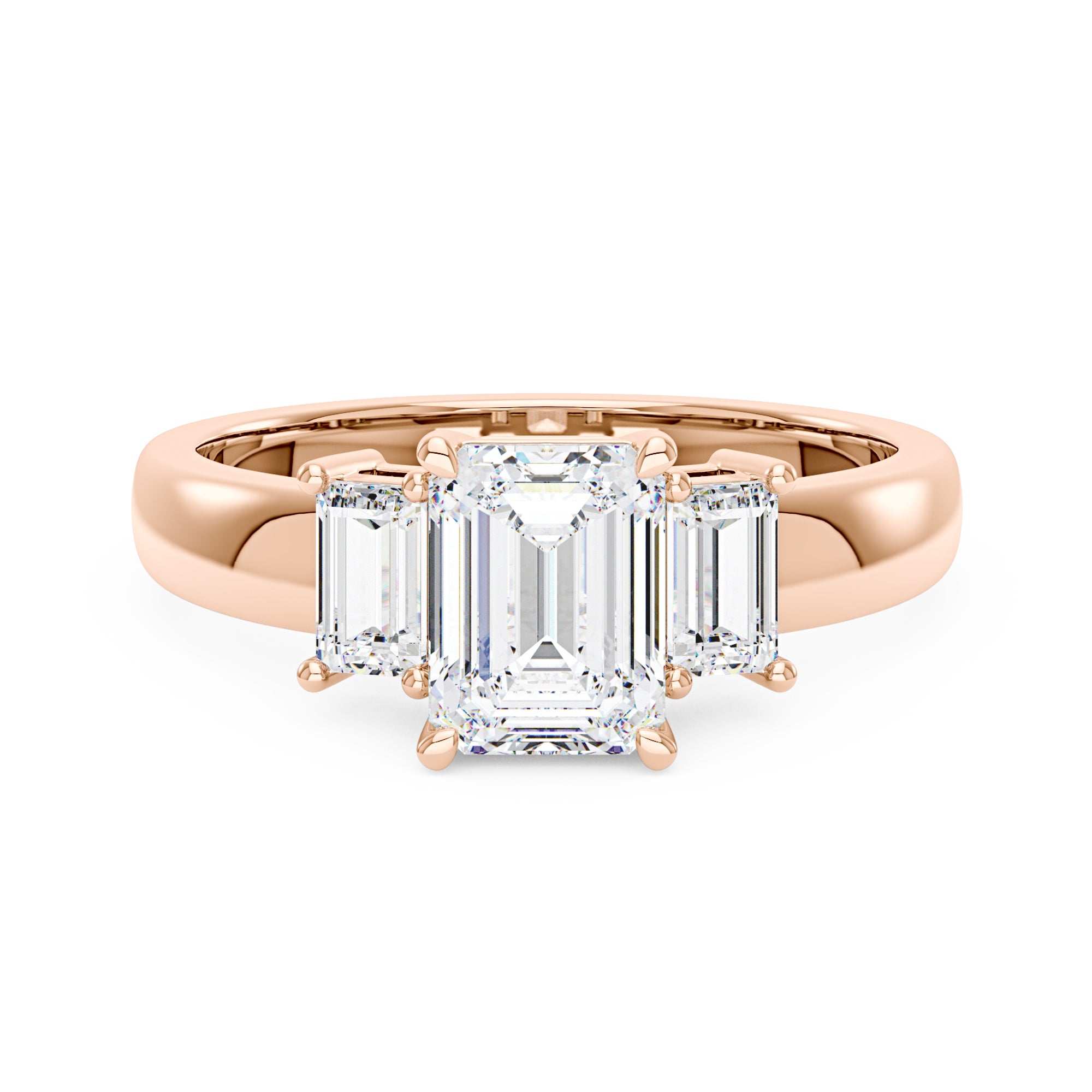 2 Carat Art Deco Emerald Moissanite Trilogy Ring