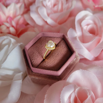 1.5 Carat Heart Moissanite Halo Ring with Pavé Band