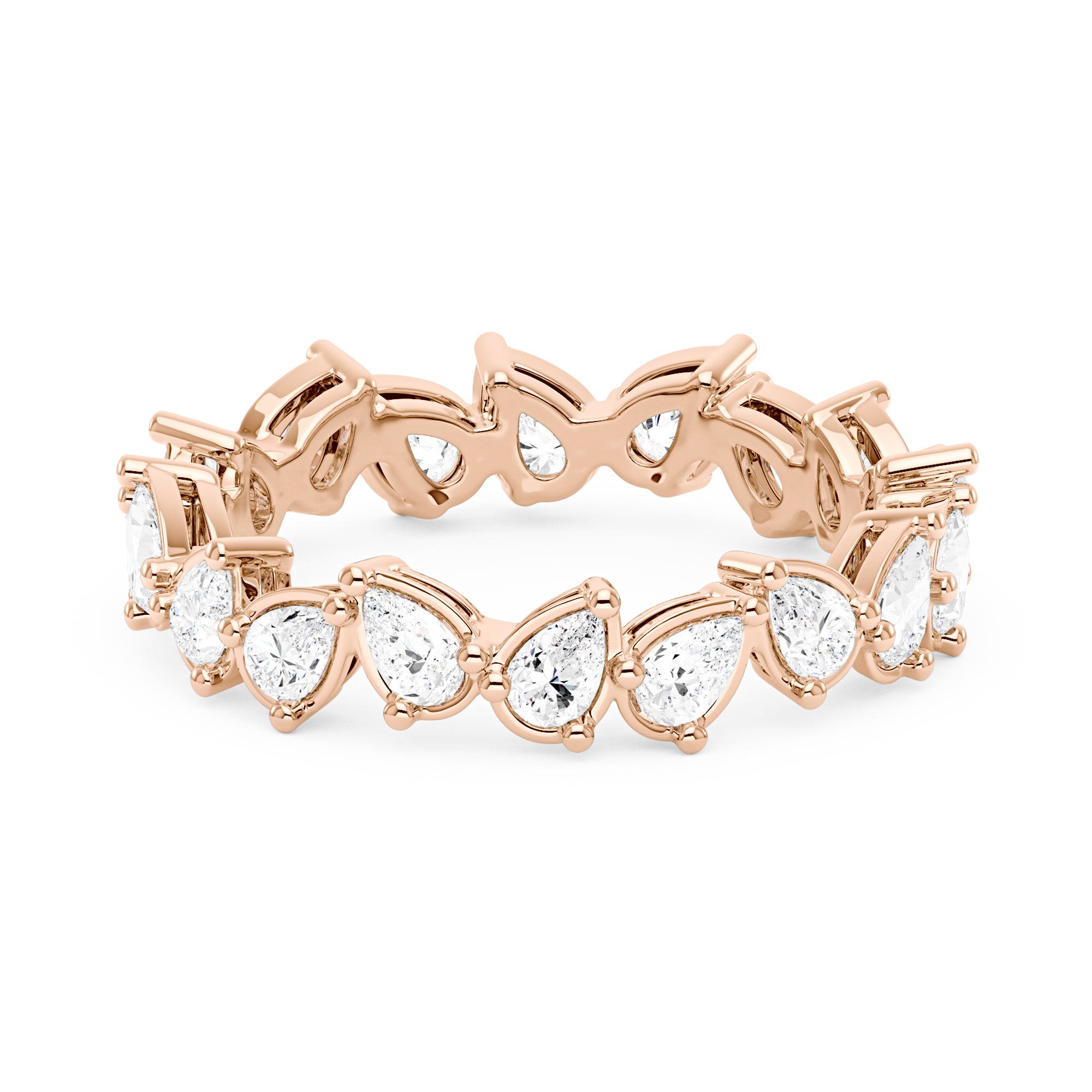 This moissanite band ring combines the timeless elegance of a bezel setting with the modern flair of an irregular pear shape. The unique pear shapes not only add a touch of sophistication but also symbolize an unending loop of love, making it a perfect piece for expressing enduring commitment.