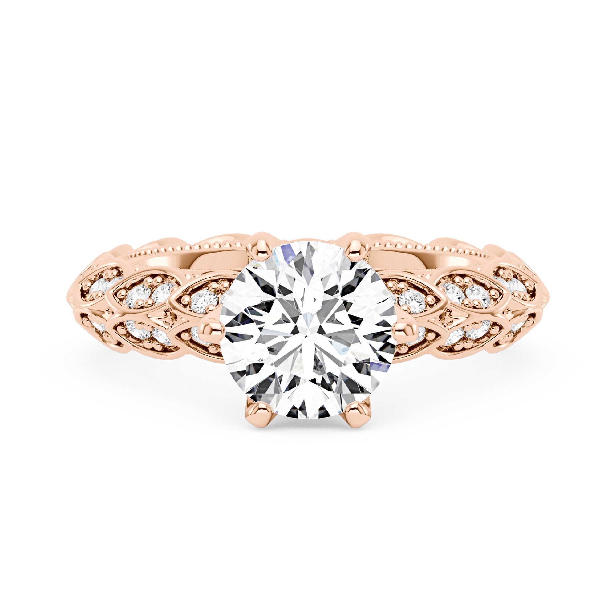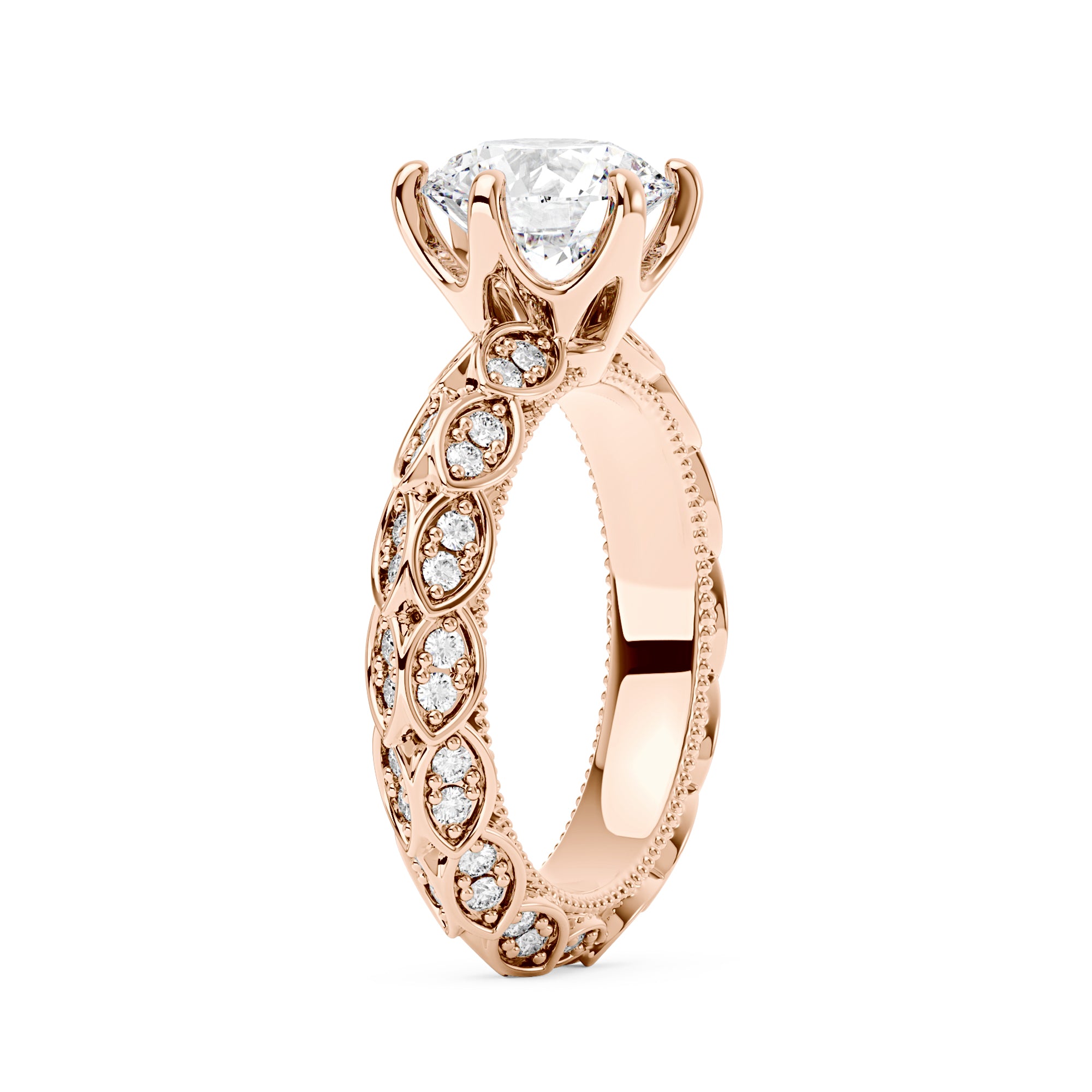 This exquisite solitaire moissanite ring combines classic elegance with modern design, featuring a prominent round-cut moissanite stone set that enhances its brilliance. The band is intricately twisted and studded with smaller moissanites, adding to the overall sparkle and luxurious feel of the piece.