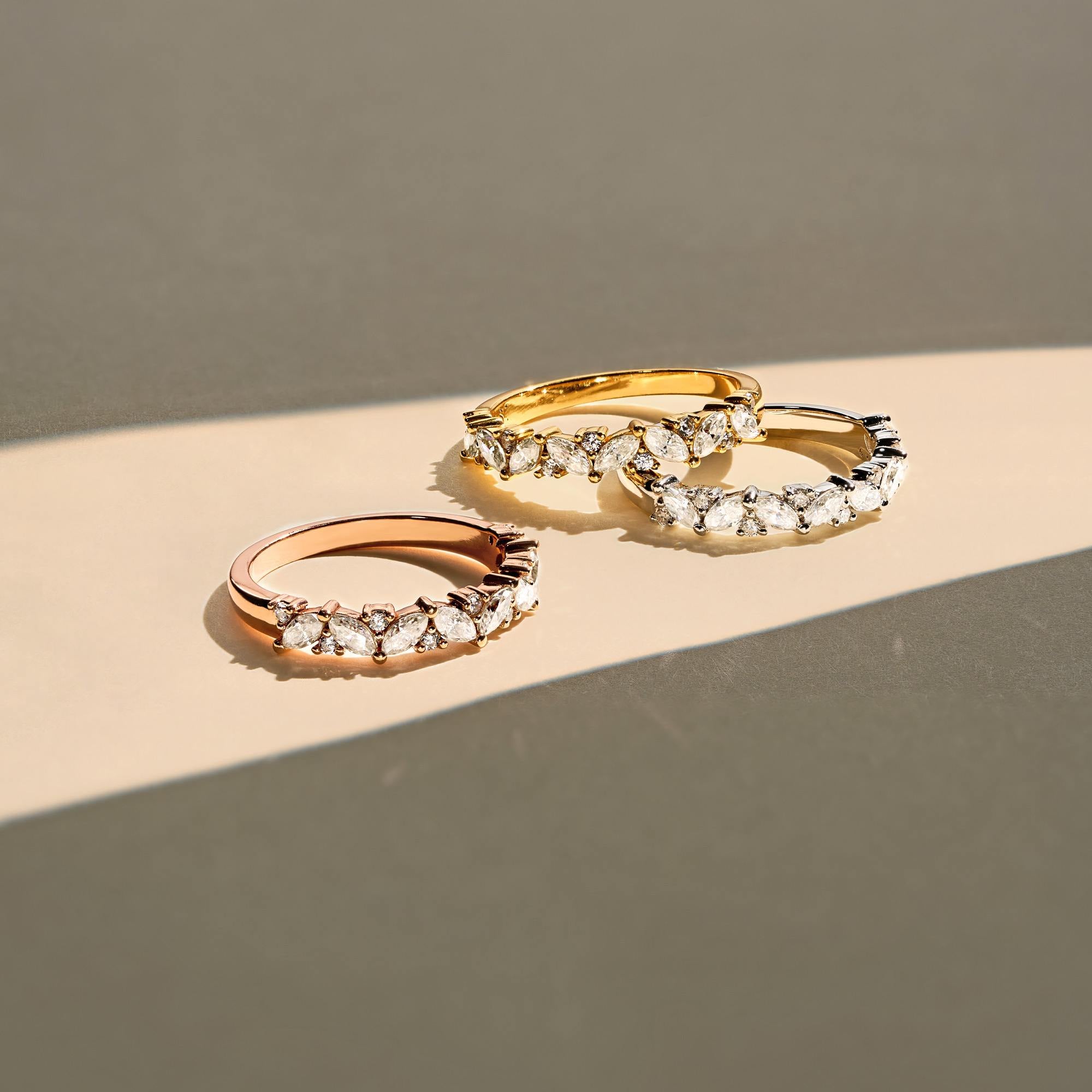 Marquise & Round Moissanite Half Eternity Band Ring