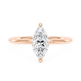 This solitaire ring features a 2ct marquise shaped moissanite set in a 4-prong set slender band. It’s a piece that exudes luxury and elegance, suitable for celebrating life’s most memorable moments.