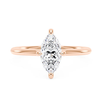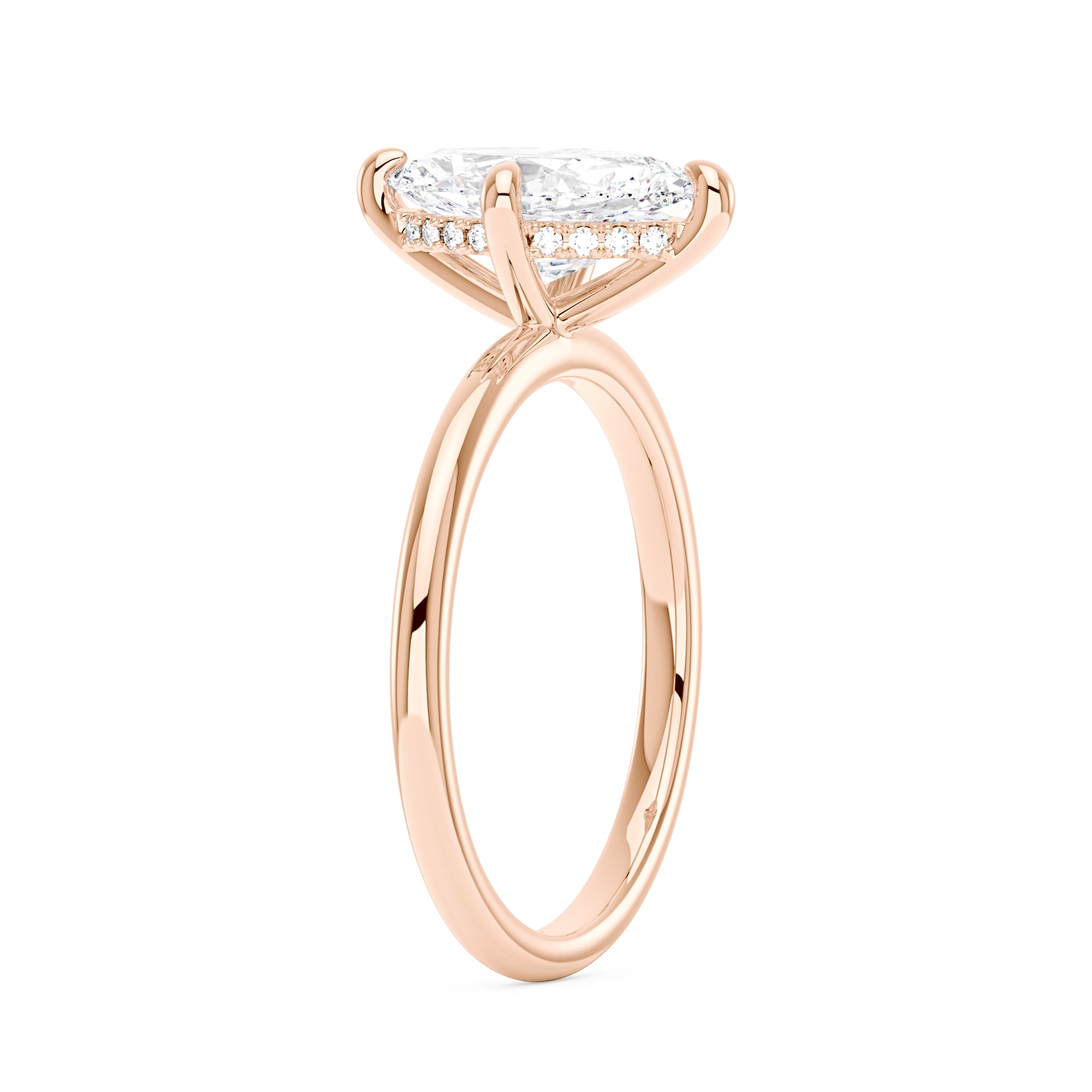 Marquise Shaped Moissanite Solitaire Ring with Hidden Halo