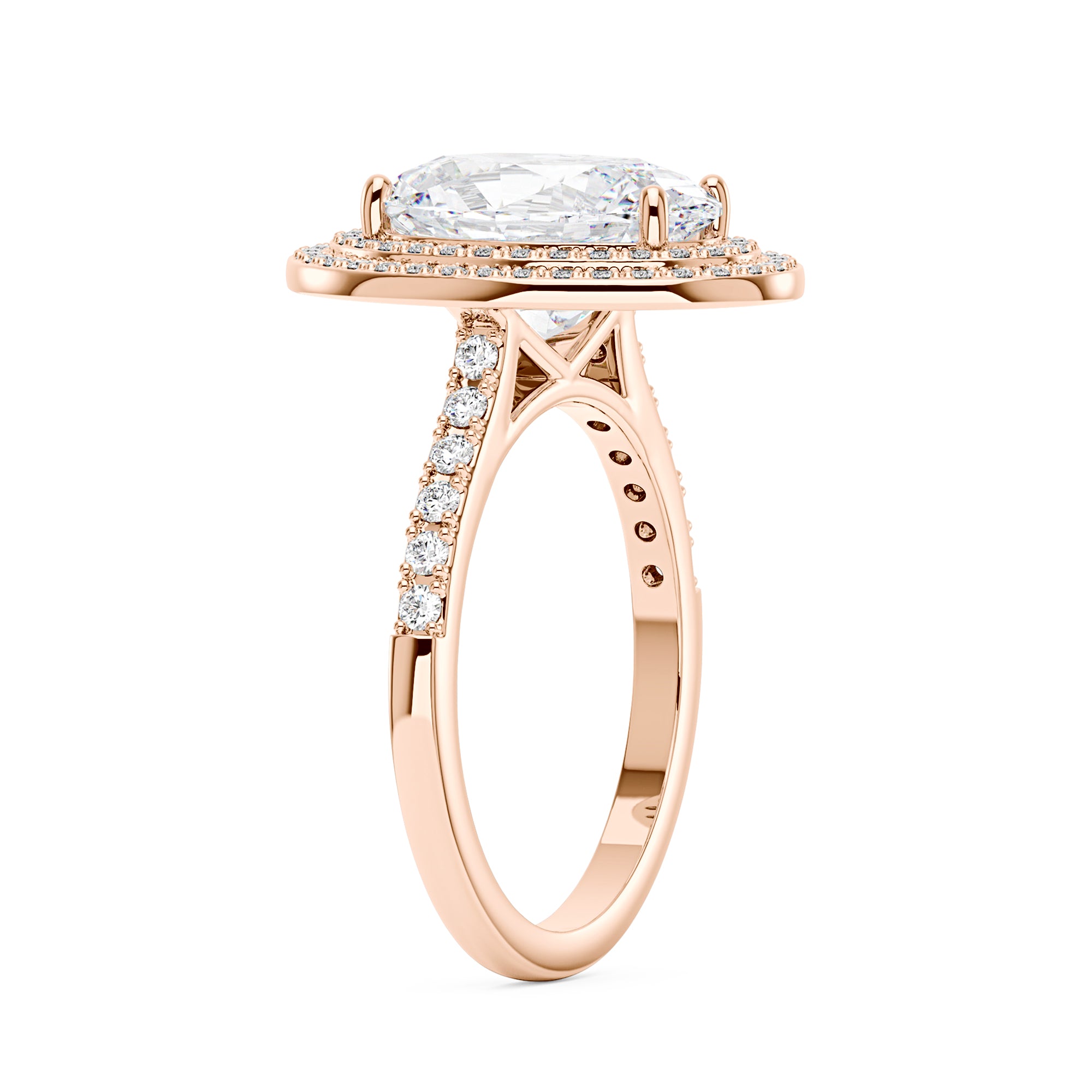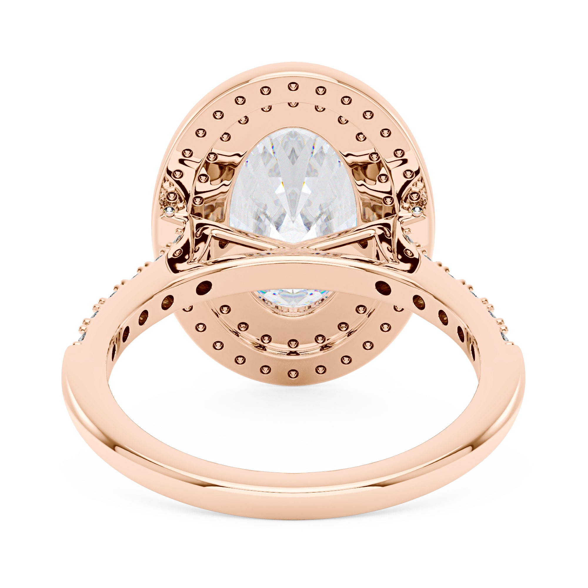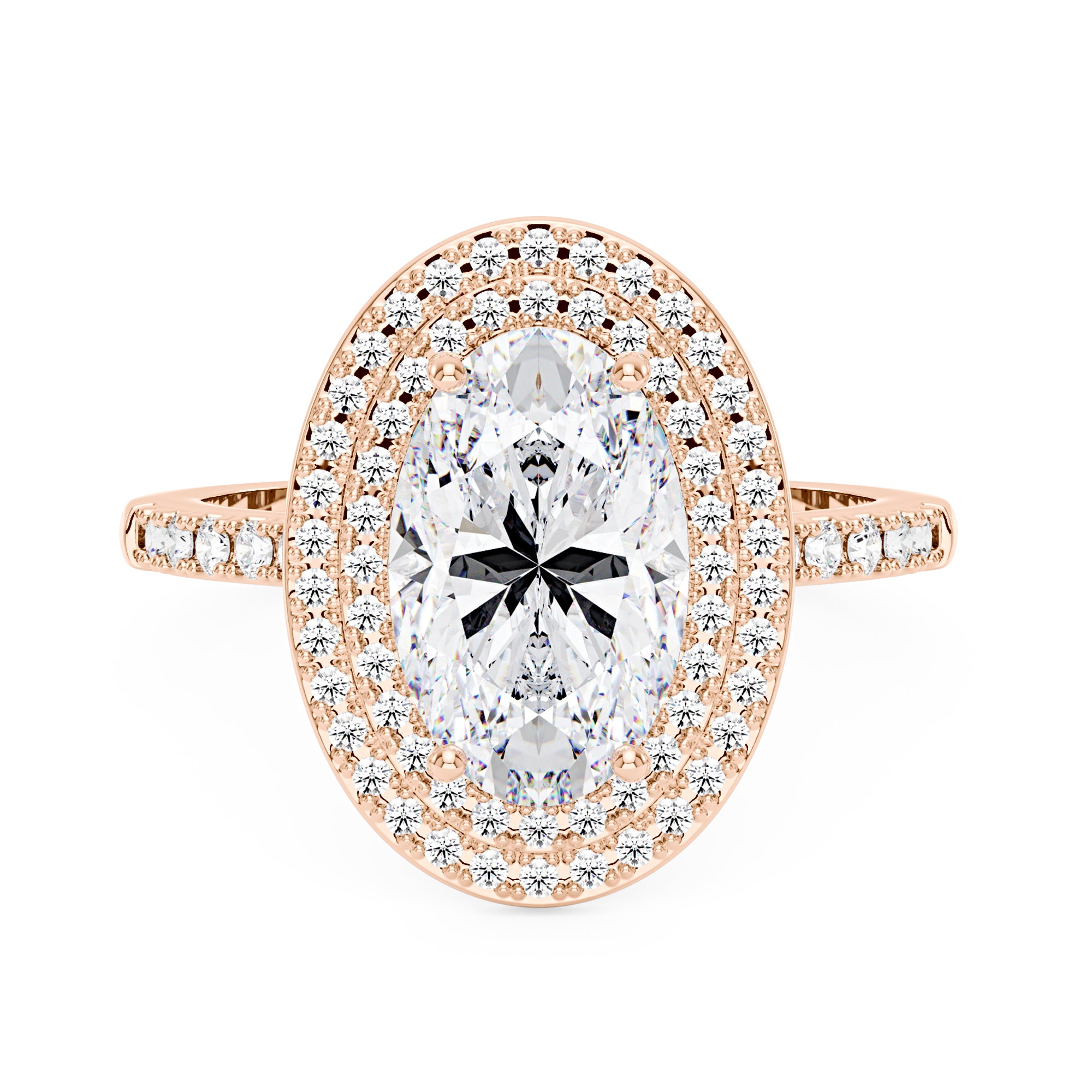 4 Carat Art Deco Oval Cut Moissanite Pavé Double Halo Ring