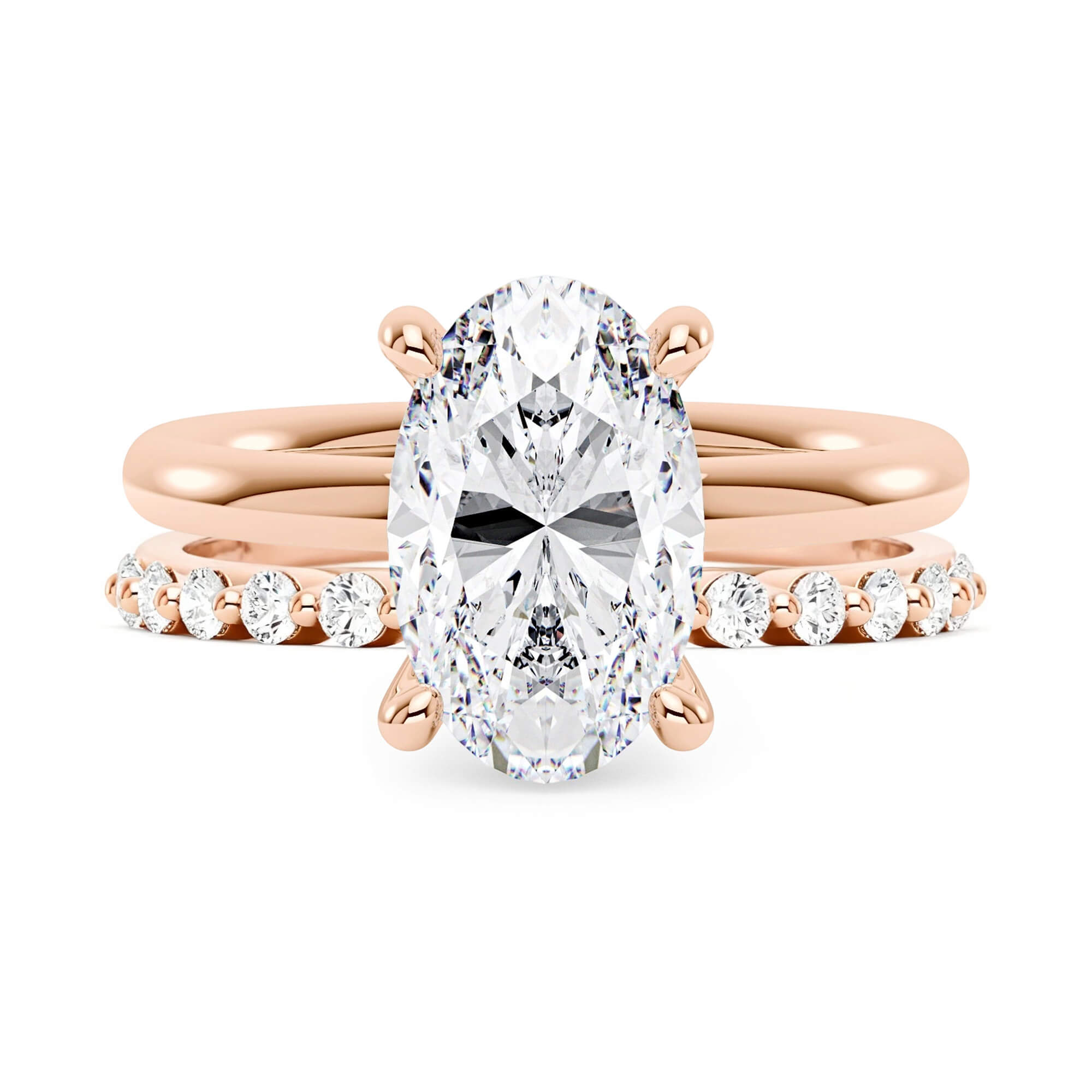 Oval Cut Moissanite Ring and Half Eternity Band Wedding Ring Set