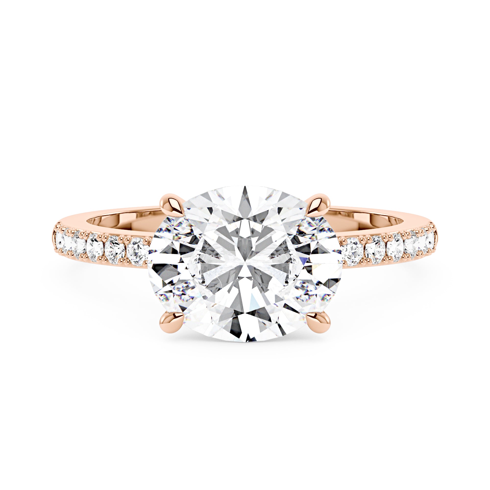 1.5 Carat Sideways Oval Moissanite Ring with Pavé Band