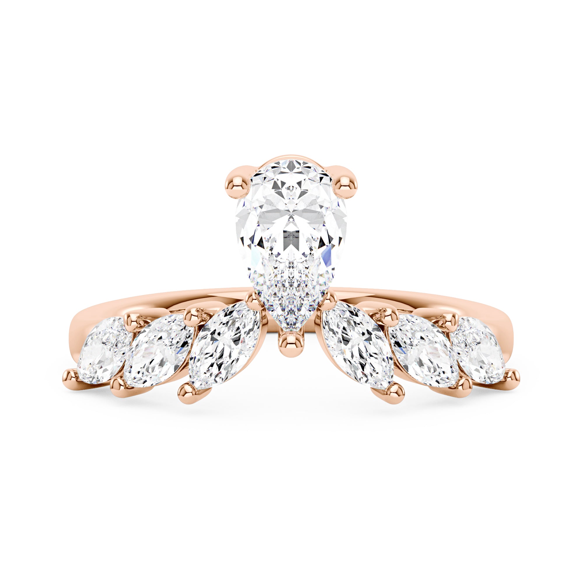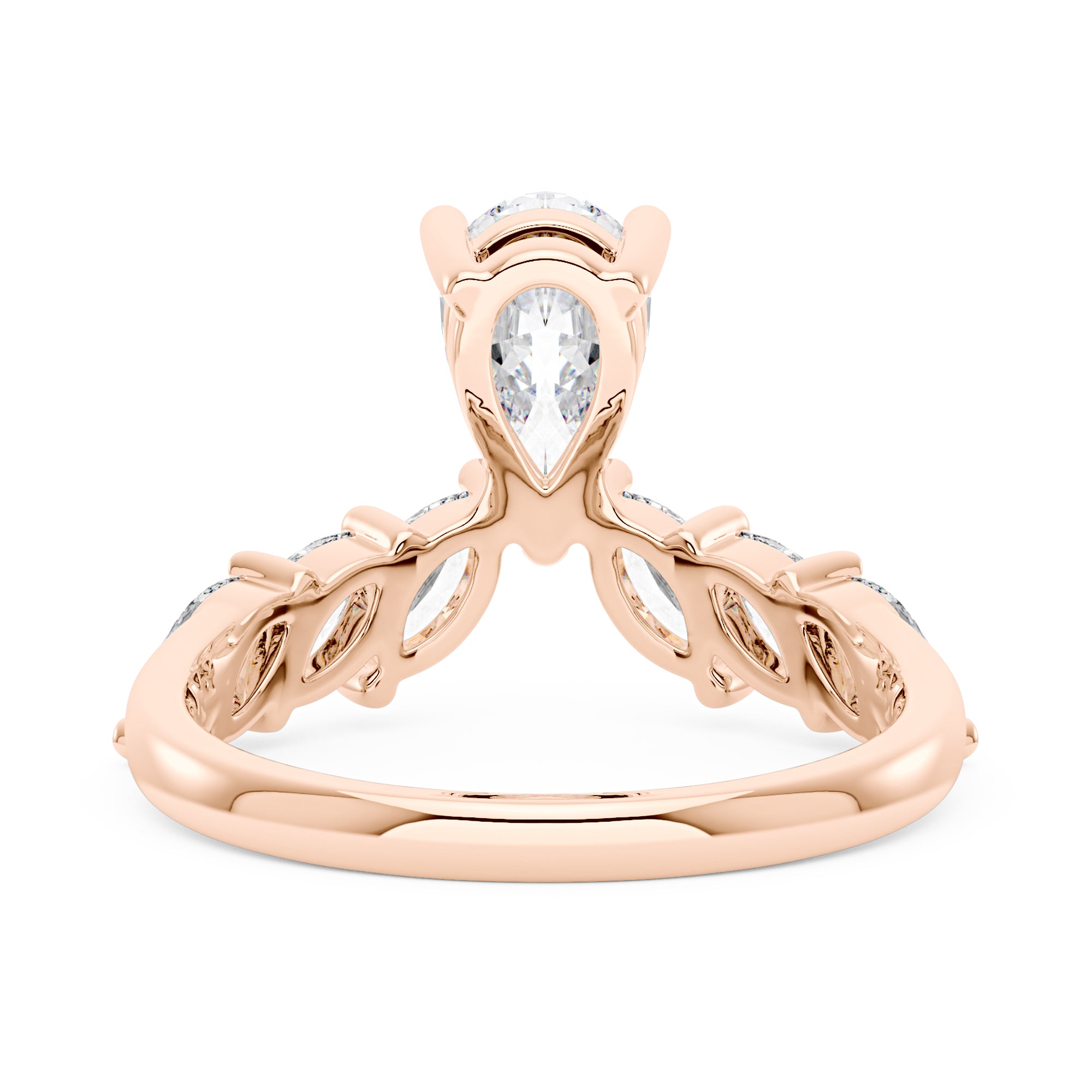 Elevate your style with our stunning moissanite ring. This exquisite piece features a unique design, adorned with a brilliant pear-cut moissanite stone, complemented by a series of marquise-cut stones. Creating a perfect blend of sophistication and sparkle.
