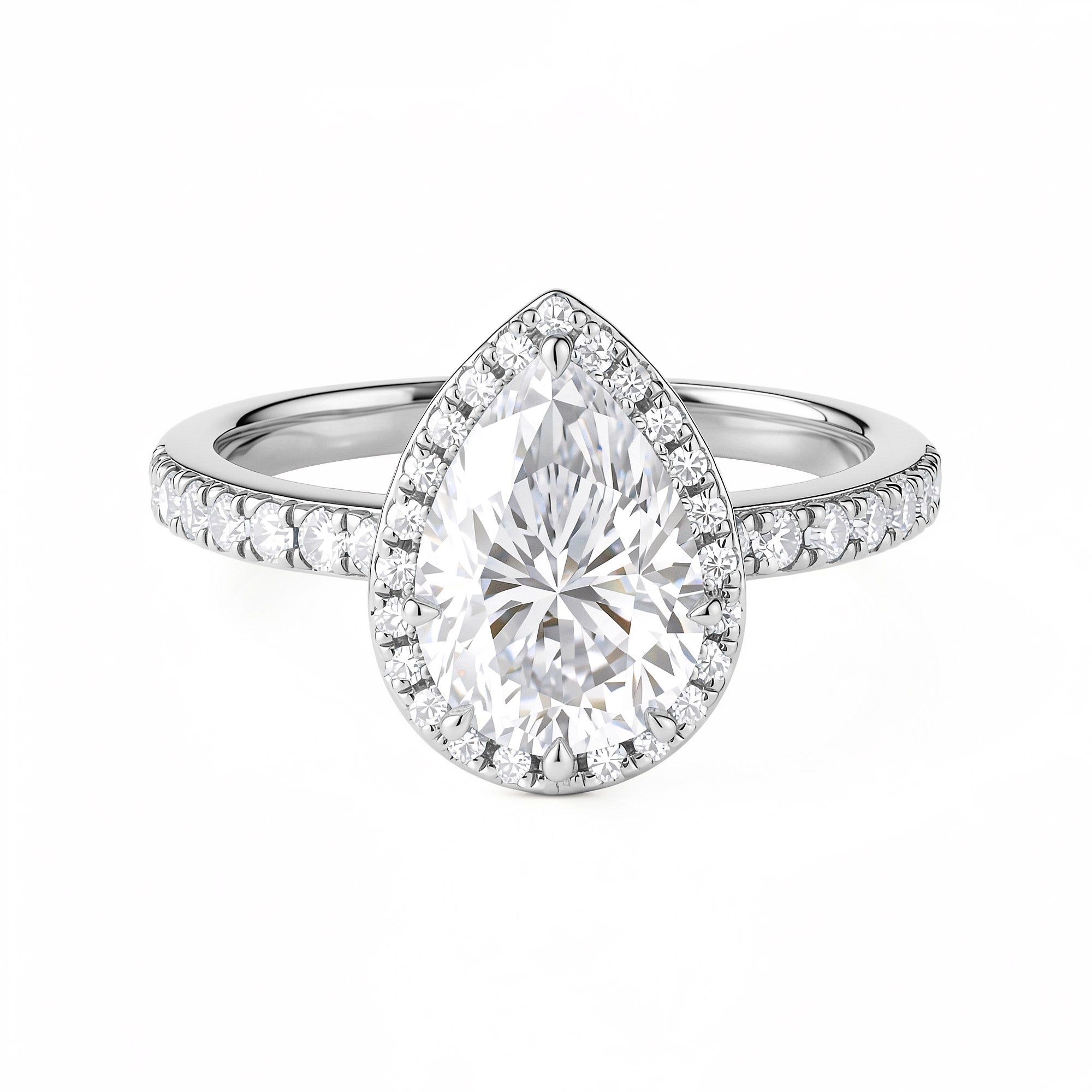 Pear Cut Moissanite Engagement Wedding Halo Pave Ring