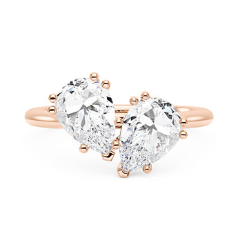 Experience the romance of this Pear Shaped Moissanite Toi et Moi Engagement Ring. With two same stones representing love, harmony, and the intertwining of two lives into one, this moissanite ring is a perfect choice for whom cherishes a unique and meaningful design.