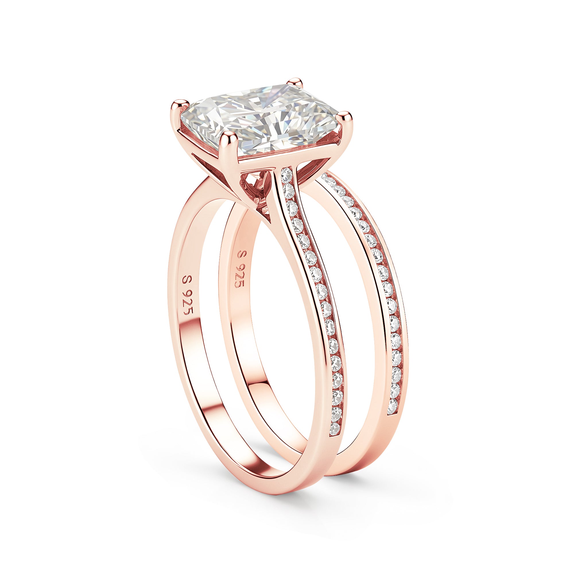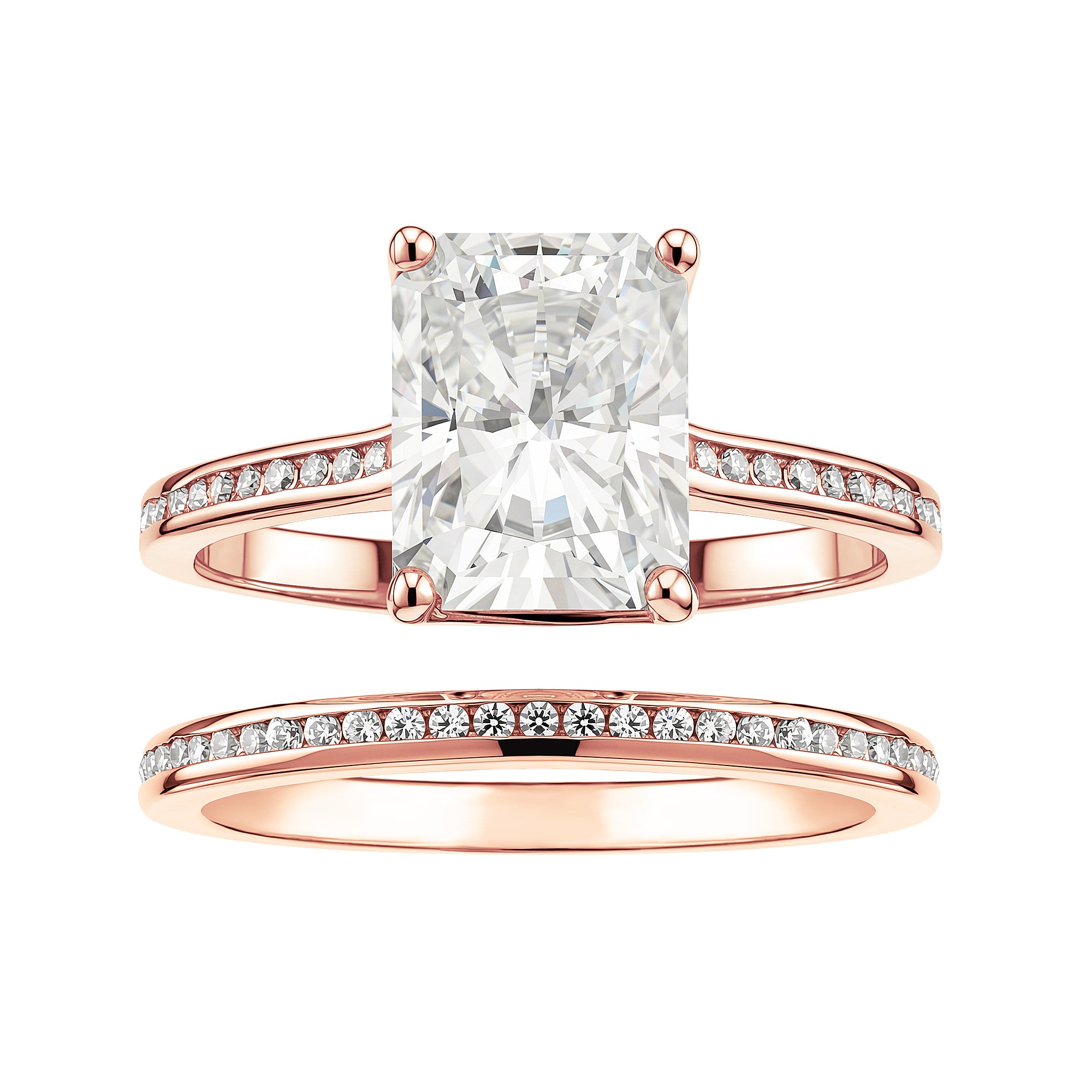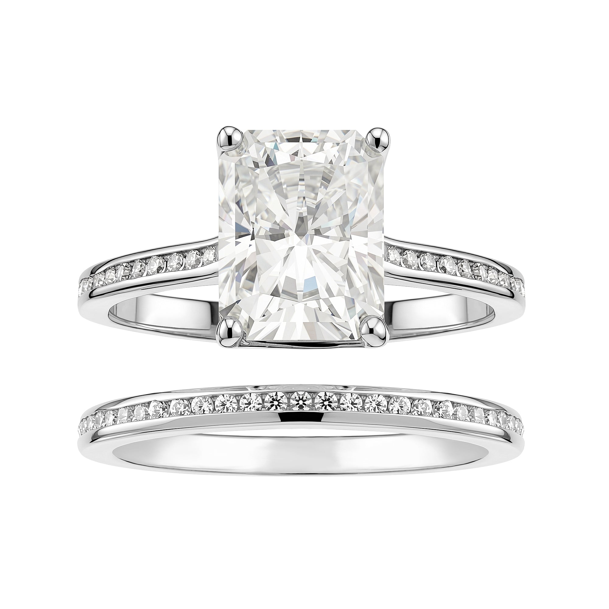 Introducing our Radiant Cut Moissanite Pavé Bridal Set — designed to captivate from every angle. Featuring a brilliant radiant-cut center stone paired with a sparkling pavé band, this stunning set delivers exceptional fire and elegance, making it the perfect choice for a breathtaking proposal and a lifetime of shine.