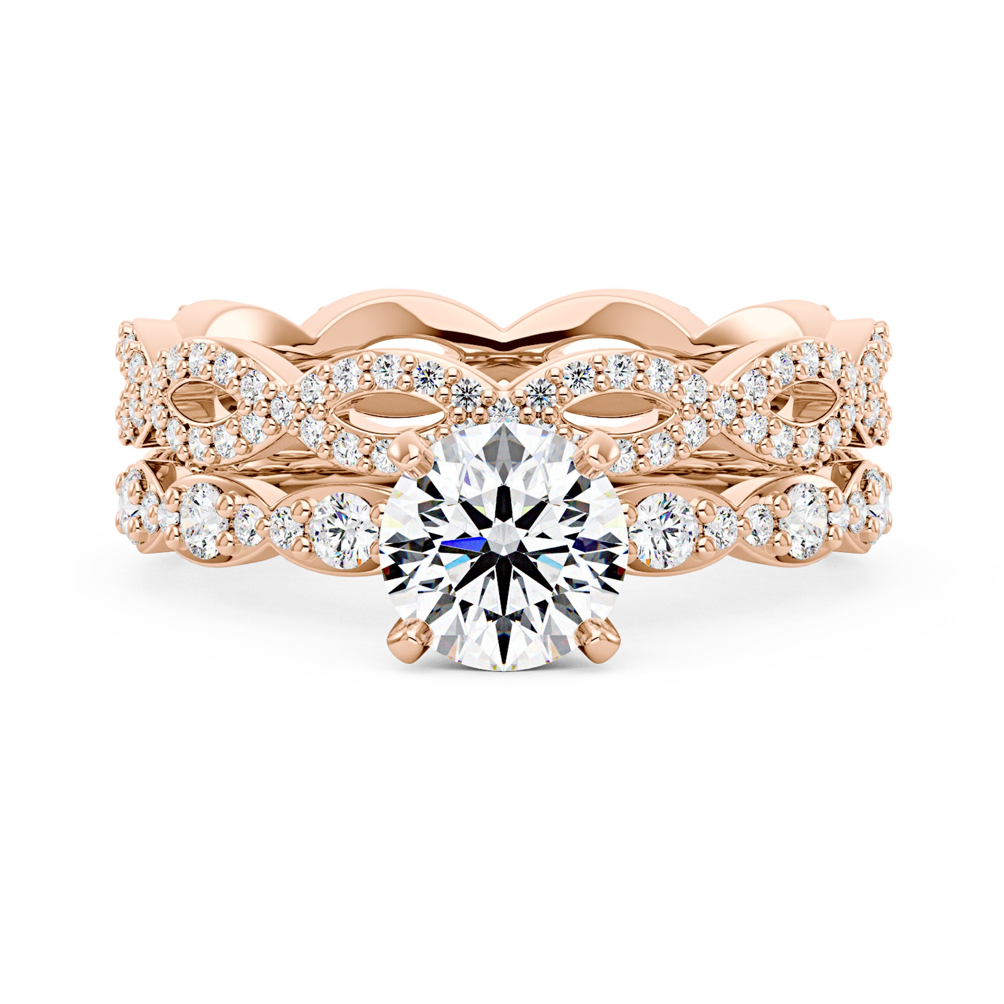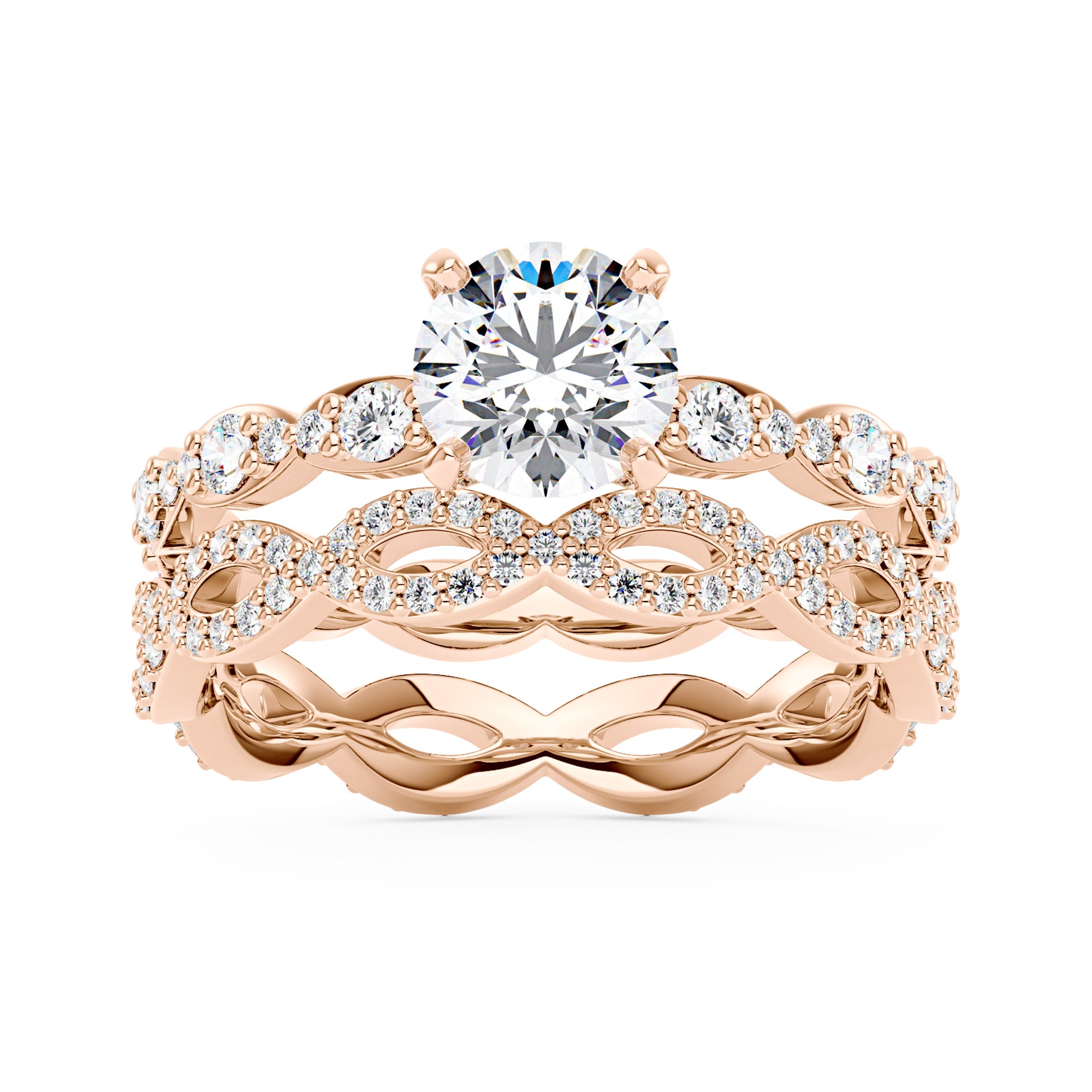 This endless infinity bridal ring set includes a round cut moissanite engagement ring with small stone accents all around, and a wedding band with small moissanites stones all over to create a radiant and dazzling effect. Whether for wedding occasions or everyday wear, it will serve as a timeless symbol, capturing beautiful memories and precious moments.