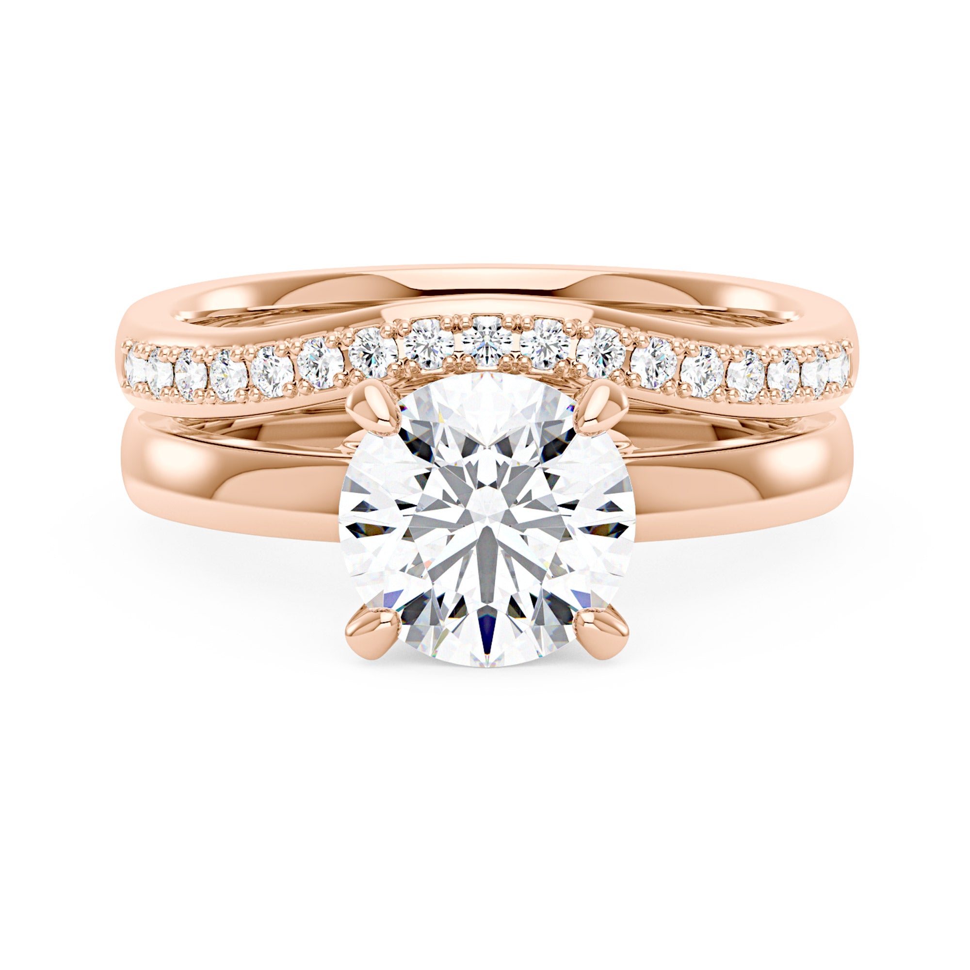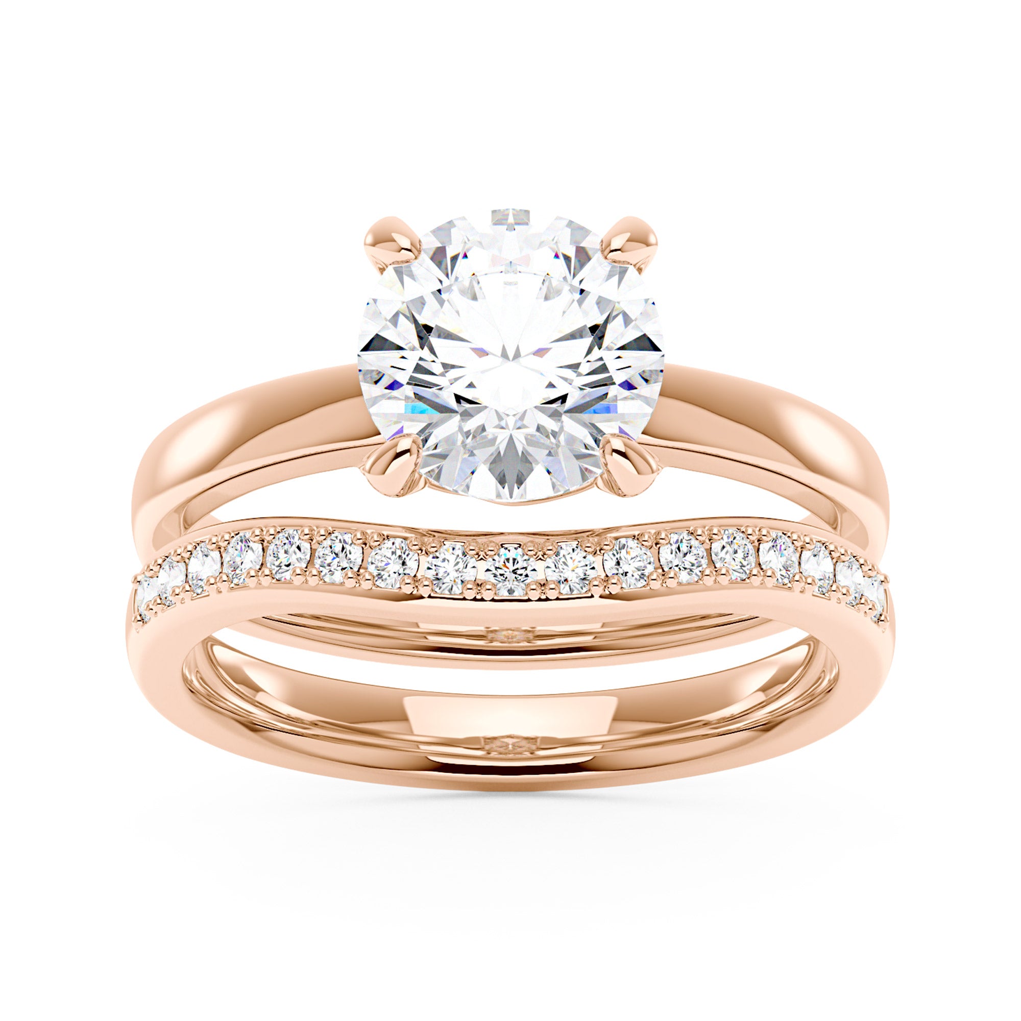 Round Cut Moissanite Solitaire Ring and Curved Band Set