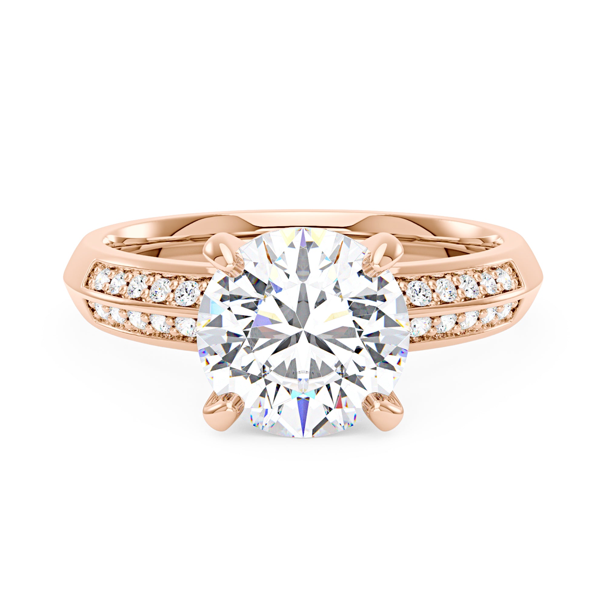 3 Carat Round Moissanite Engagement Ring with Pavé Double Row Band