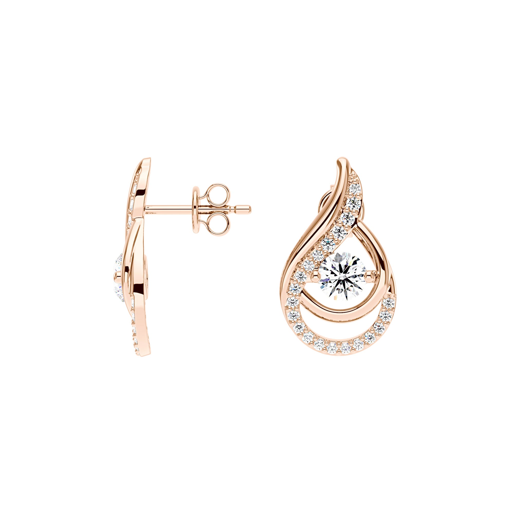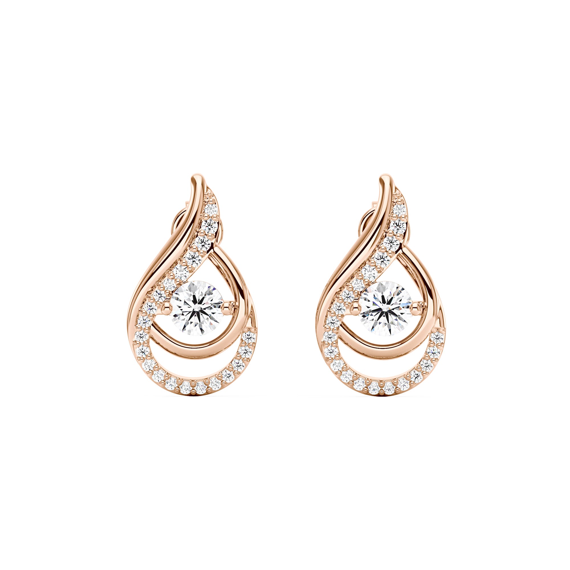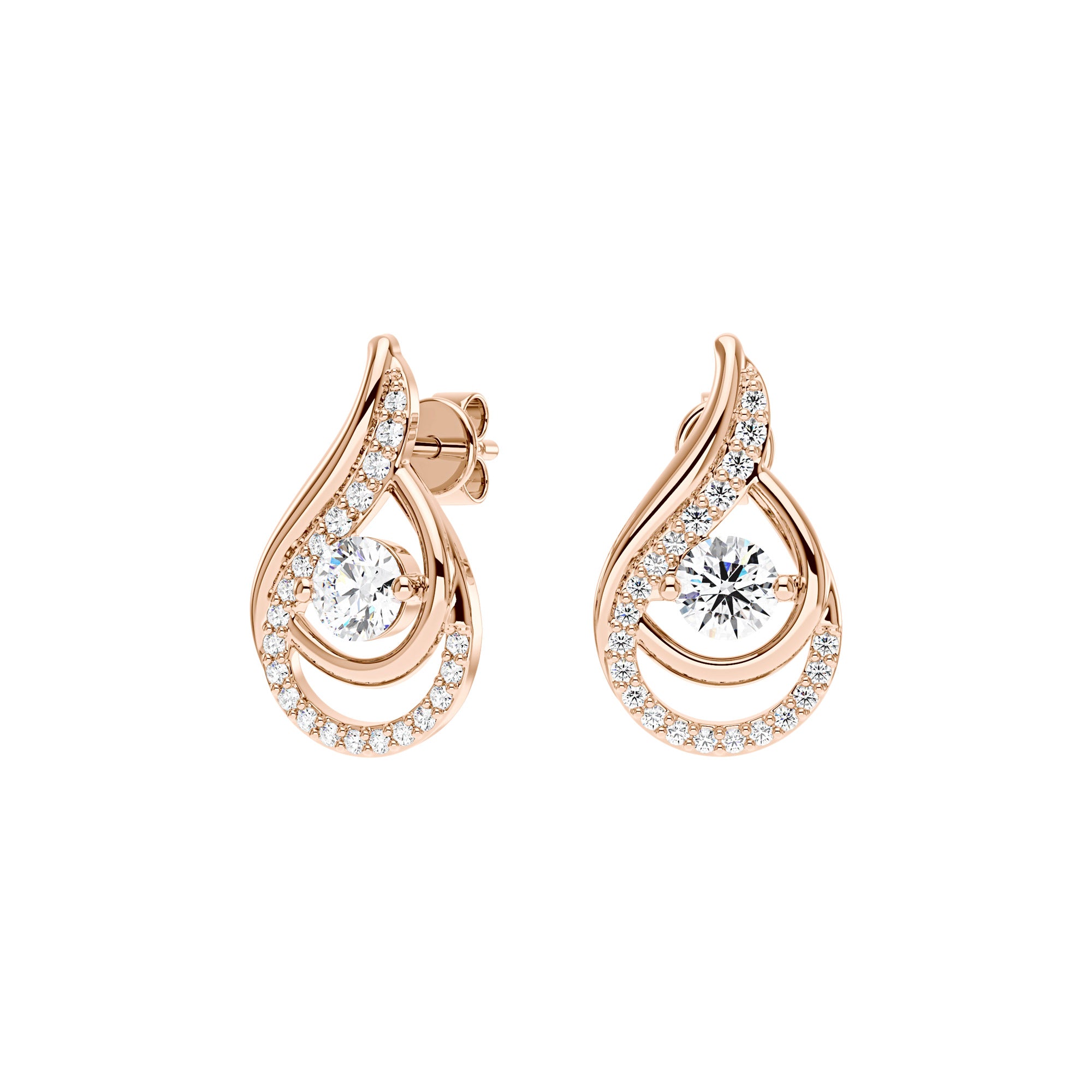 This pair of exquisite stud earrings feature high-quality moissanite stones, set in a stunning swirling design. The intricate pattern elegantly wraps around the central moissanite, enhancing its brilliance and fire.