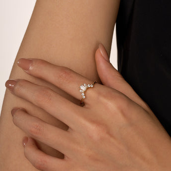 Tapered Baguette Marquise Round Moissanite Curved Band